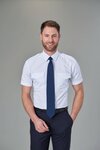 Short sleeve, slim fit, 2 button cuff, twin chest pockets with flap, pen holder, epaulettes, machine washable at 40 degrees