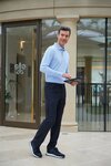 Tailored fit, 2 cargo pockets, 2 hip patch pockets, 2 front pockets, button fastening, metal key loop.